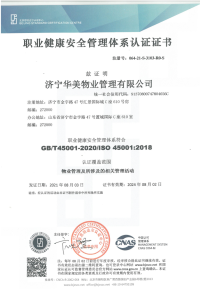 山東華美云著物業有限公司自 2003年成立,經過20余年的發展沉淀,目前擁有物業管理面積已達到300余萬平方米,公司部門經理以上人員均獲得了國家認可的職業資格證書,專業技術人員持證上崗。為質量管理(ISO9001:2015)、環境管理(ISO14001:2015)和職業健康安全管理(ISO45001:2018)三大體系認證企業,并獲得行政審批局核準的 勞務派遣經營許可證 ,以及濟寧市公安局頒發的 自行招用保安員單位備案證明 。公司設有總經理室、人力資源部、財務部、品保部和工程部等職能部