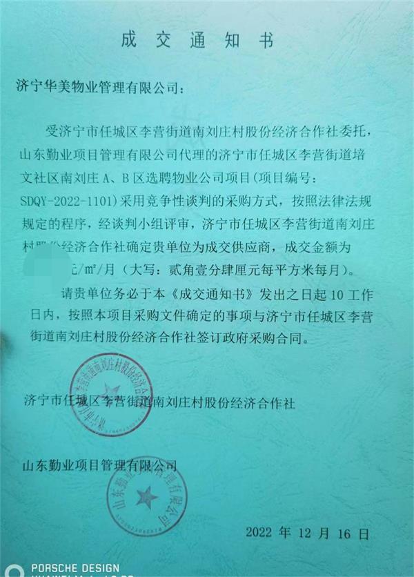 恭喜成功中標李營街道培文社區南劉莊A、B區物業服務項目