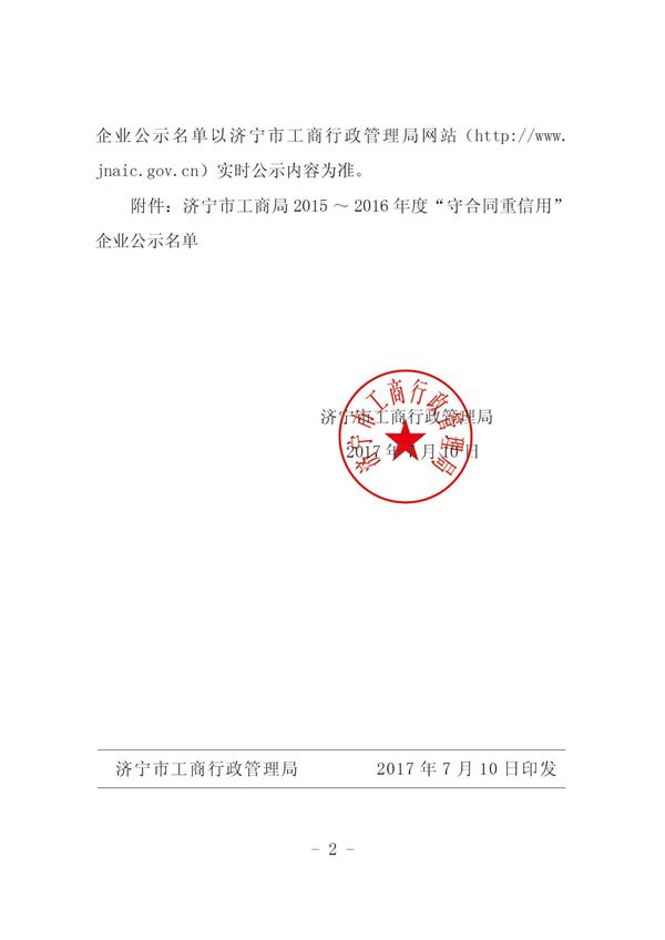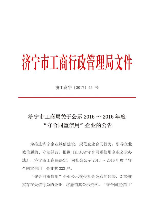 祝賀公司榮獲濟(jì)寧市“守合同重信用”企業(yè)
